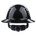 - Full brim design helps deflect falling debris and radiant heat